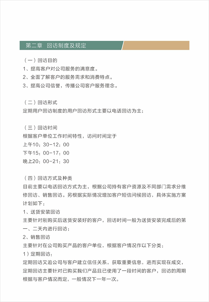 心理準(zhǔn)備:充分理解顧客信息,對上門的路線,時(shí)間要予充分考慮。按時(shí)上門,嚴(yán)禁遲到或無故失約,若中途出現(xiàn)特殊情況,必須提前與顧客聯(lián)系,解釋原因,并向顧客道歉。