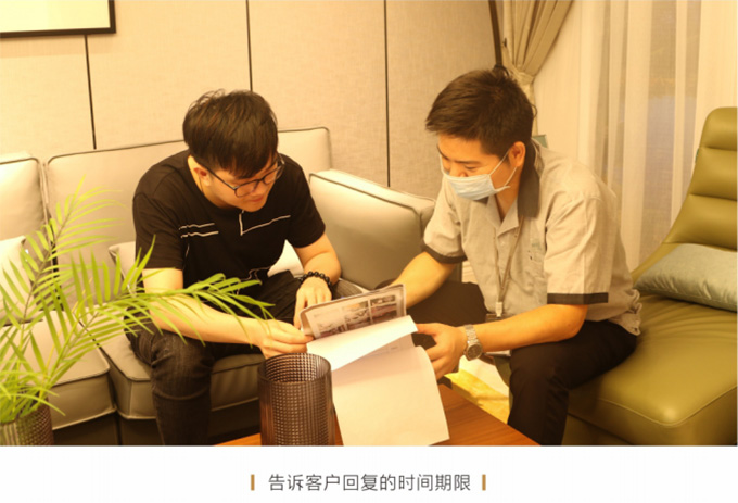 上門現(xiàn)場查看情況后,確定是補(bǔ)件或維修或返廠,并告知客戶大概需要多久時(shí)間能夠解決完問題并真誠地表示歉意。
