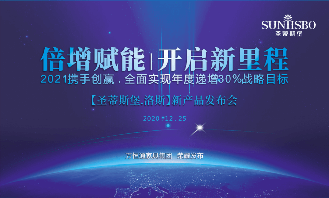 2020年12月25日,倍增賦能|開啟新里程——“圣蒂斯堡·洛斯”新品發(fā)布會在?廣東省東莞市厚街鎮(zhèn)會展中心南路2號的集團(tuán)營銷中心盛大舉行,圣蒂斯堡董事長王健文先生攜公司高層領(lǐng)導(dǎo),與來自五湖四海的經(jīng)銷商家人們歡聚一堂,共同見證【圣蒂斯堡·洛斯】新品榮耀面世,正式拉開了圣蒂斯堡2021年的發(fā)展序幕。