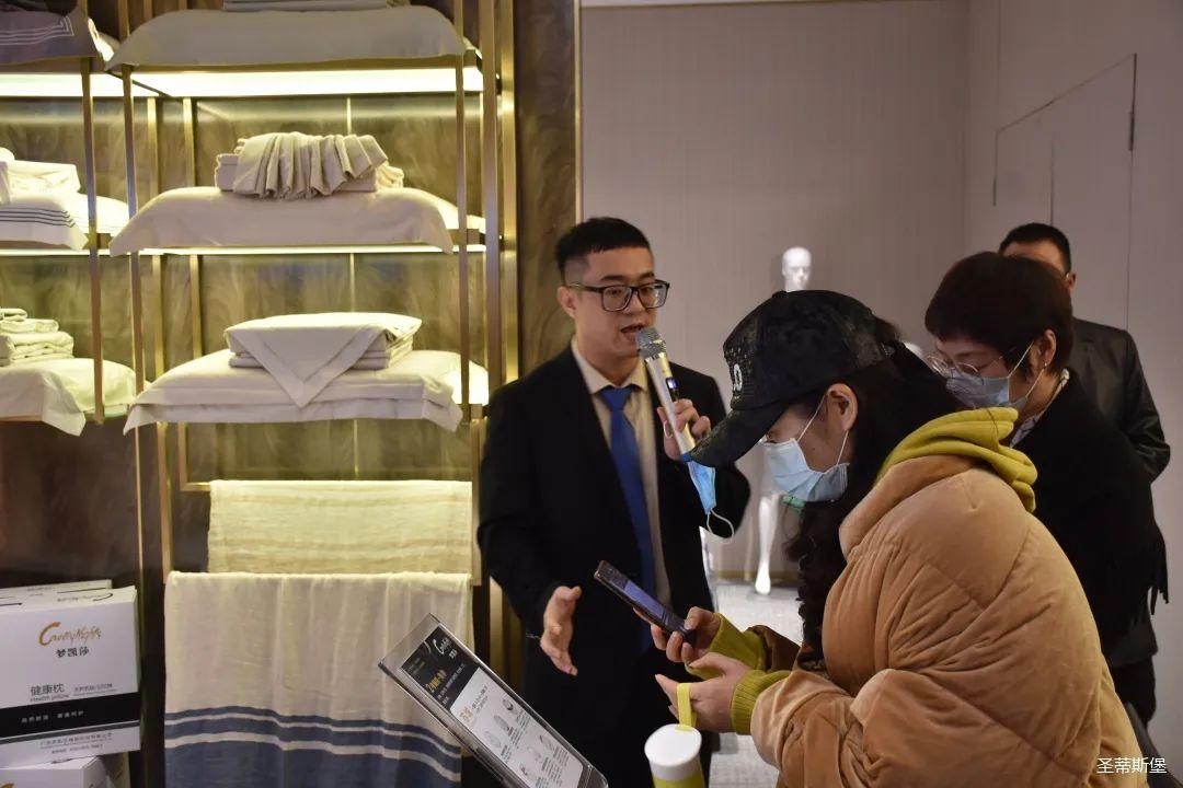 12月25日上午,按照發(fā)布會流程安排,參與發(fā)布會的嘉賓先到名家居世博園【夢凱莎】旗艦店進(jìn)行了參觀。上午9:45分,經(jīng)銷商嘉賓們陸續(xù)來到名家居世博園2樓——美國夢凱莎的展廳里,yl23455永利集團(tuán)營銷總經(jīng)理陳玉偉先生帶領(lǐng)夢凱莎楊講師團(tuán)隊為嘉賓們講解【夢凱莎床墊】新品系列的10種睡感體驗及材質(zhì)工藝,讓嘉賓們從工藝特點,科技睡感上,實時體驗【夢凱莎床墊】的獨有特色?!耙粡埡么矇|,睡出好健康”,“夢凱莎”品牌以其卓爾不群的產(chǎn)品優(yōu)勢和為專為國人打造健康舒適睡眠的品牌理念贏得了在場經(jīng)銷商的一致好評。