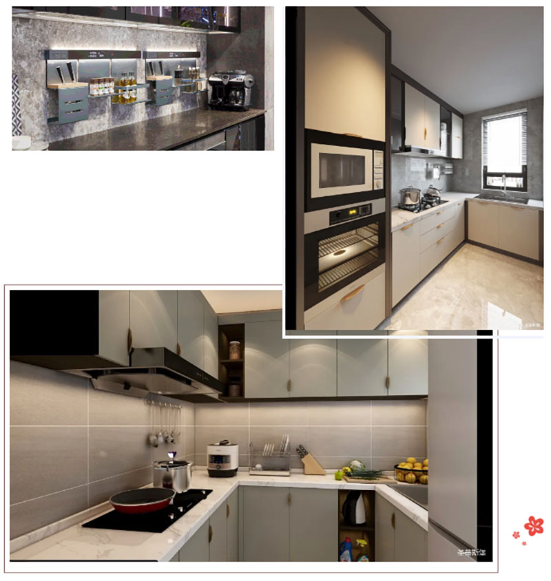 光有頂部主光源是不夠的,因?yàn)樯眢w和櫥柜的遮擋會(huì)造成操作區(qū)陰影。這時(shí)候就需要安裝水槽、櫥柜區(qū)的光源作為補(bǔ)充輔助照明,使光線集中照明,讓使用區(qū)域更清晰。
