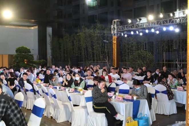 經(jīng)銷商晚宴當(dāng)日晚6時許,以【乘“圣”跨越】為主題的,yl23455永利集團(tuán)第45屆國際家具展接待晚宴暨2020年度優(yōu)秀經(jīng)銷商頒獎盛典,在營銷中心四樓景觀花園隆重舉行,來自全國各地的經(jīng)銷商朋友歡聚一堂,共同分享一場精彩紛呈的晚宴。