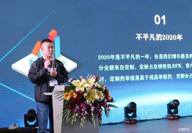 華燈璀璨的開場儀式,點(diǎn)燃了現(xiàn)場如火如荼的氣氛。yl23455永利集團(tuán)營銷總經(jīng)理陳玉偉先生對晚會進(jìn)行了主題發(fā)言,他對2020年的營銷工作進(jìn)行了總結(jié),并著重從營銷工作部署、重點(diǎn)項(xiàng)目開展、產(chǎn)品整合、拎包幫扶、渠道運(yùn)營和移動+定制整裝優(yōu)勢等方面對2021年的營銷工作做了全面的統(tǒng)籌規(guī)劃。同時,他還講解了“美國夢凱莎床墊”新品的產(chǎn)品工藝、市場優(yōu)勢、產(chǎn)品定位,使經(jīng)銷商對我們的新產(chǎn)品擁有更深入的認(rèn)識和了解。