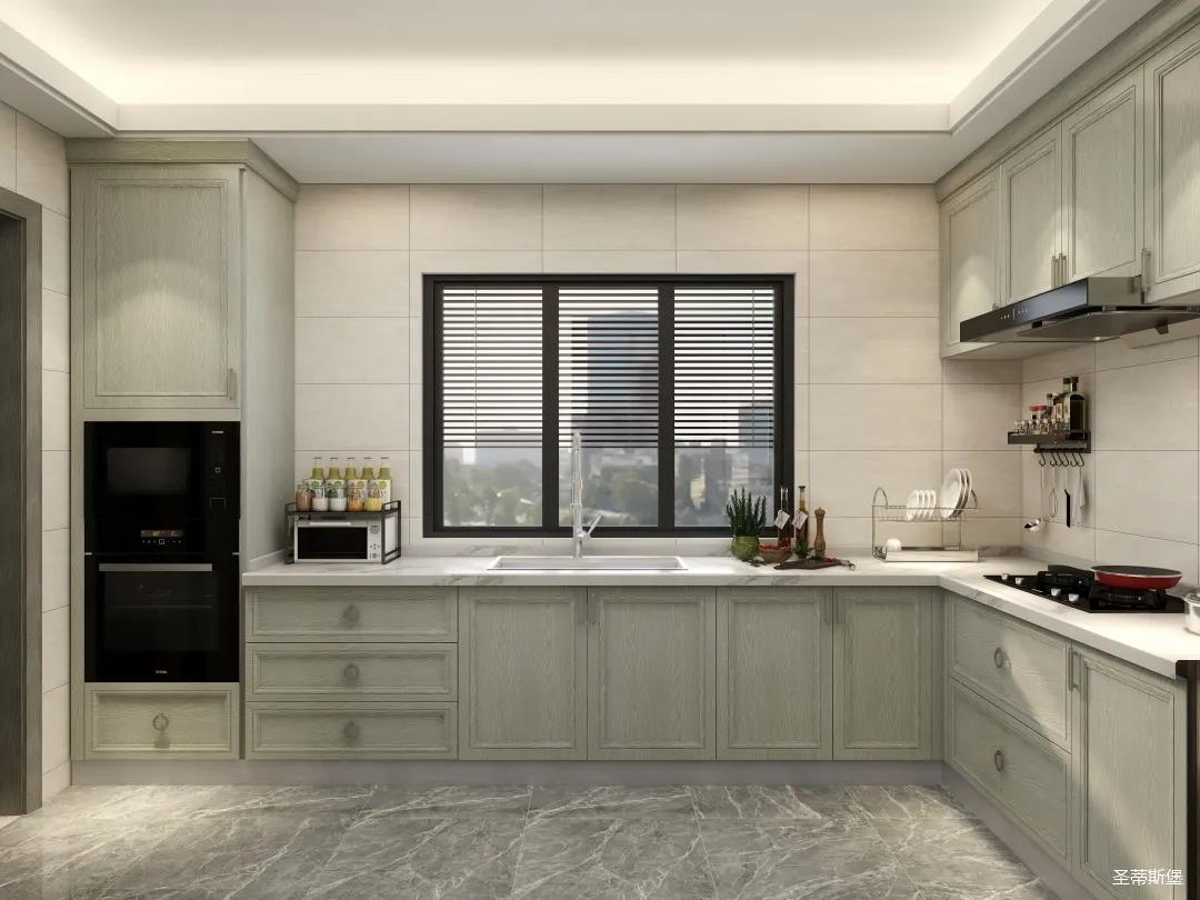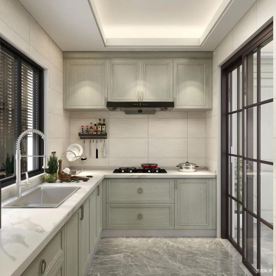 ▲廚房運用幾何線條鋪滿一整面墻,是滿滿的靈動和美感,實木材質(zhì)的質(zhì)感賦予了廚房空間品質(zhì)與格調(diào)。按比例分配大小,打造成儲物格框架,讓每個角落都留下業(yè)主生活的痕跡。