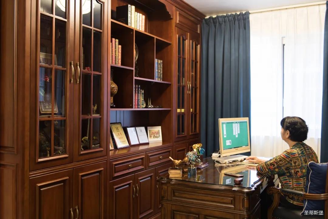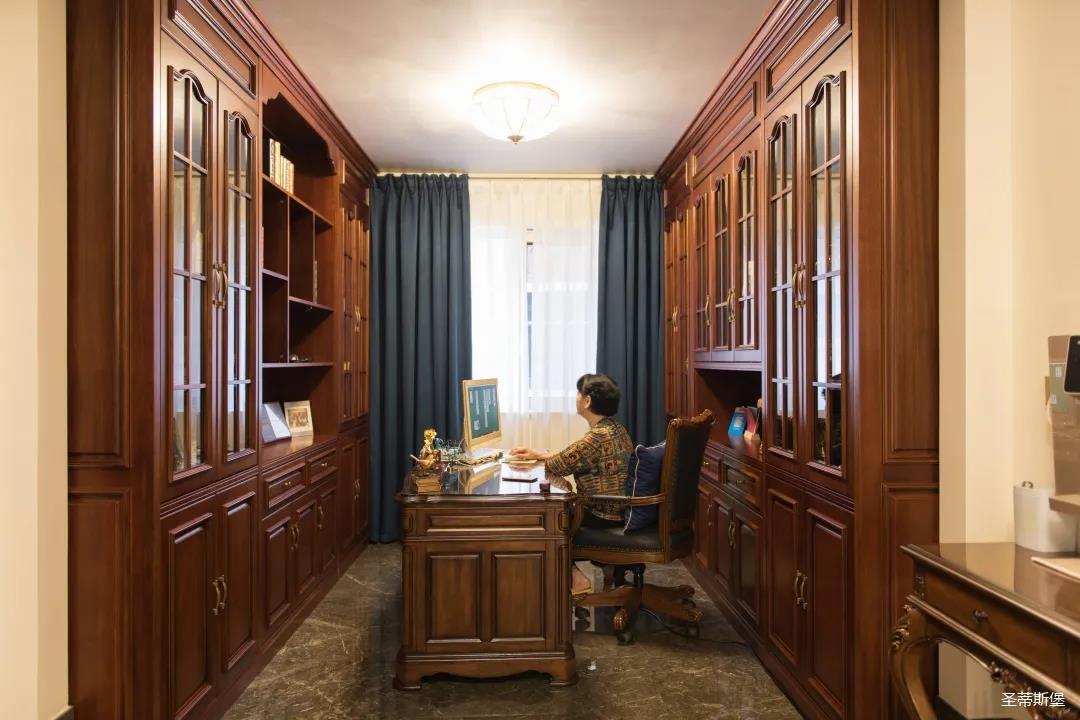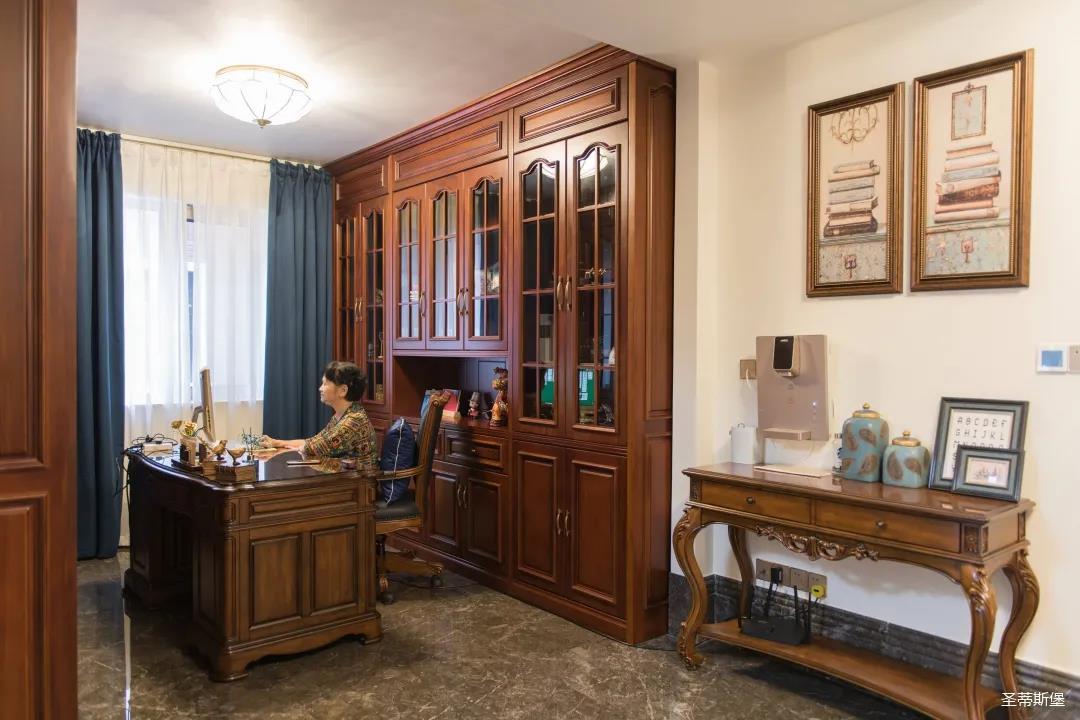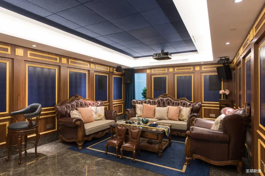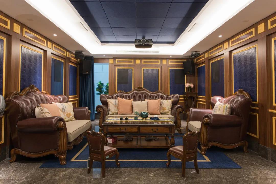業(yè)主夫婦非常熱情好客,平時(shí)工作之余也會(huì)在家里邀三兩好友一起觀影,觀影室的整體設(shè)計(jì)容納著濃烈的古色古香,長(zhǎng)方形圖案排列搭配復(fù)古的家具與配飾,精細(xì)的雕花藝術(shù),于細(xì)節(jié)之間演繹著精致生活。不管時(shí)光如何輾轉(zhuǎn)變換,家的定義從不曾改變,它撫慰著我們的心靈,承載著我們的喜樂,從細(xì)膩的質(zhì)感中感知家的點(diǎn)滴變化,才是對(duì)生活最真實(shí)的寫照。