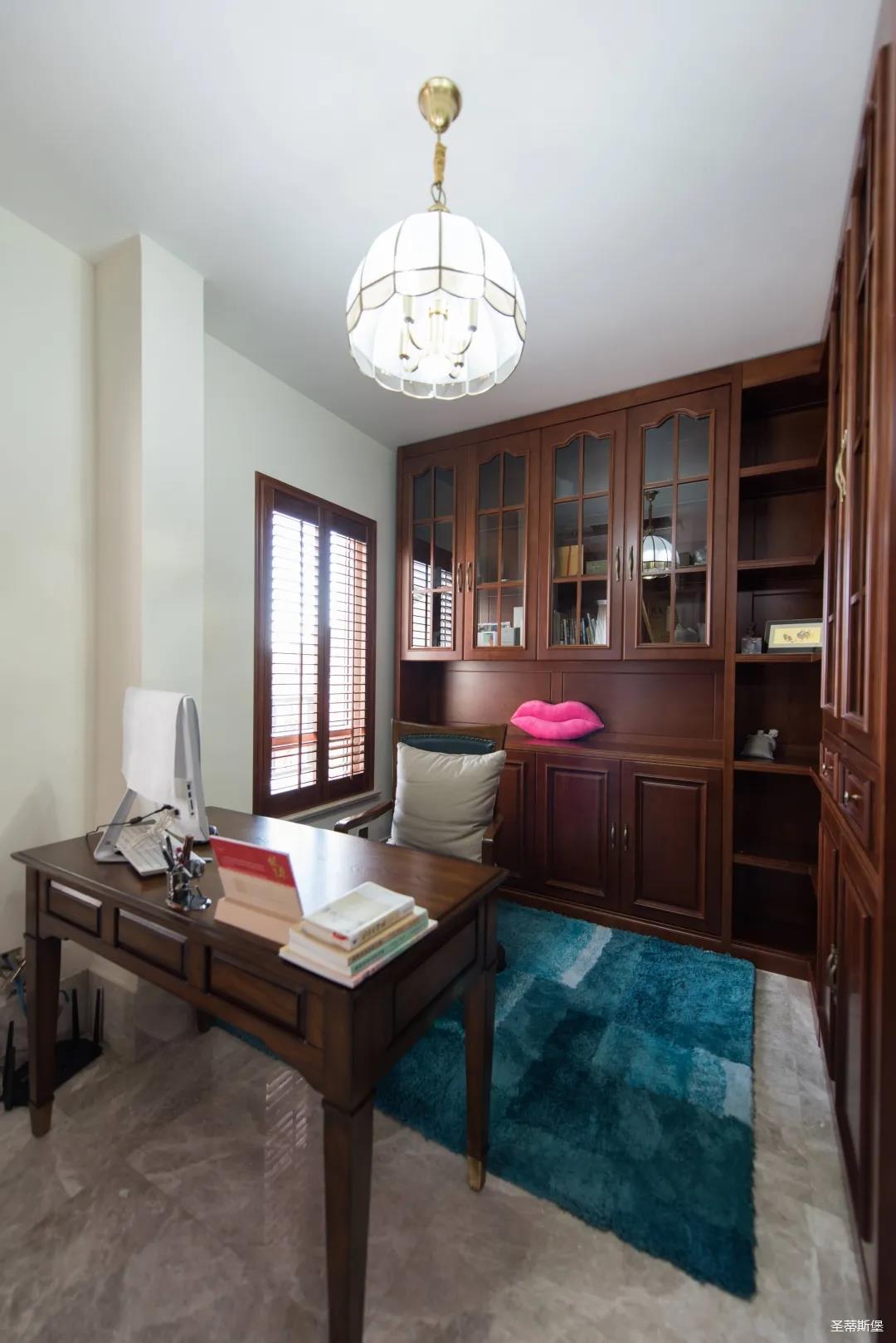 書房設(shè)立在二樓樓梯間,實(shí)木整體書柜為書房帶來自然的清香,開放式的空間布局把一家人鏈接在一起,增加彼此之間的互動(dòng)交流與陪伴,同時(shí)也與樓下區(qū)域動(dòng)靜分離,用一張書桌,一把舒適的皮質(zhì)沙發(fā)椅,與主人開啟一段安靜的閱讀時(shí)光。