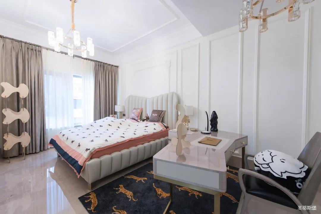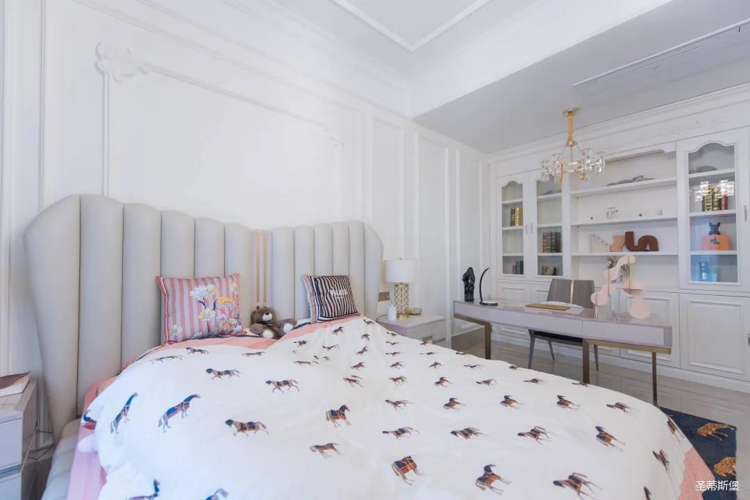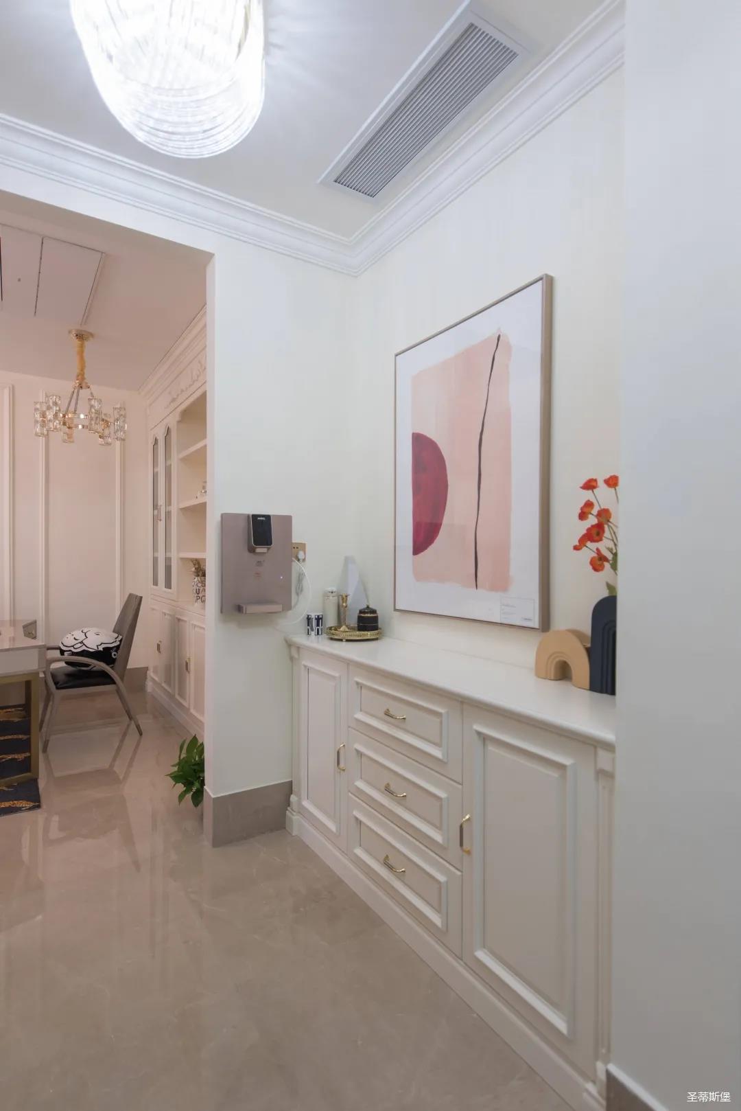 經(jīng)過房間玄關(guān)過道,一眼就被這夢(mèng)幻的景象給征服,摒棄繁雜,少許的金色元素點(diǎn)綴,予以空間輕奢細(xì)膩的質(zhì)感,卻又不失美式韻味。