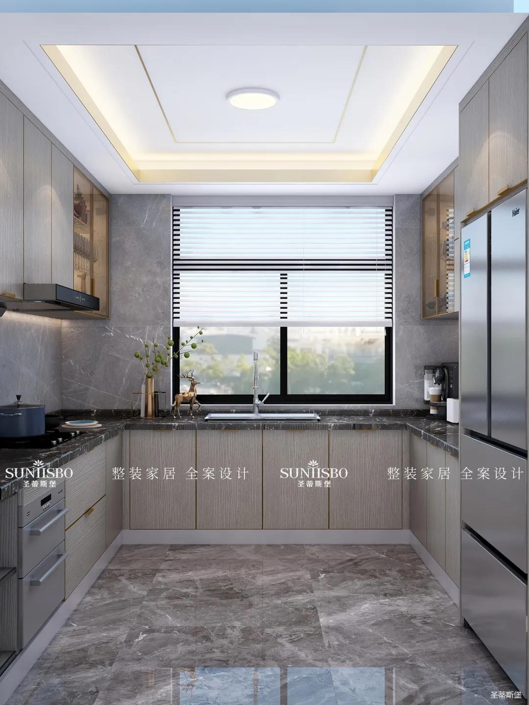 打通廚房與客廳空間,新增西廚區(qū)域,滿足業(yè)主最大程度的生活交流;