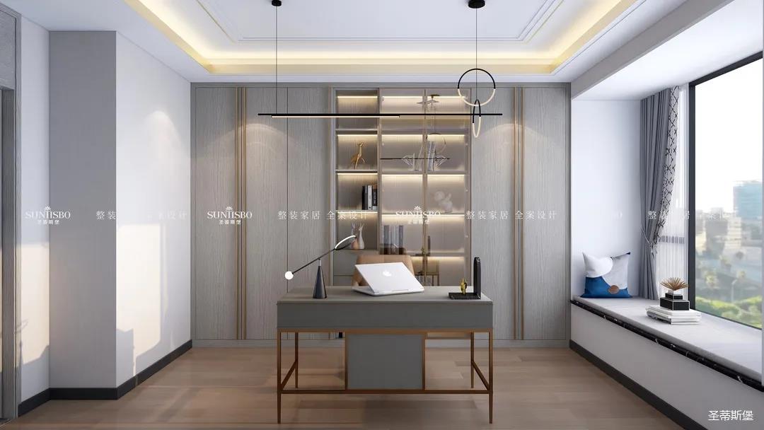 業(yè)主鐘愛閱讀,設(shè)計(jì)師將其中一間房打造為書房,設(shè)計(jì)的風(fēng)格從布局到陳列,從色調(diào)到材質(zhì),都能給人一種優(yōu)雅從容的感受。讓業(yè)主在繁忙的生活中,有一處能夠讓人靜心的空間品茶閱讀。