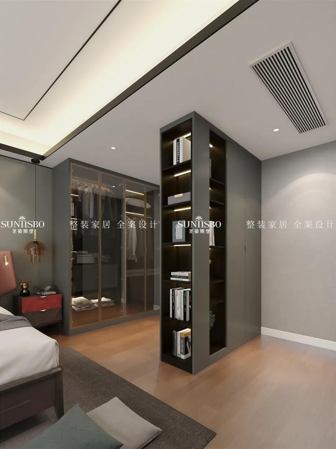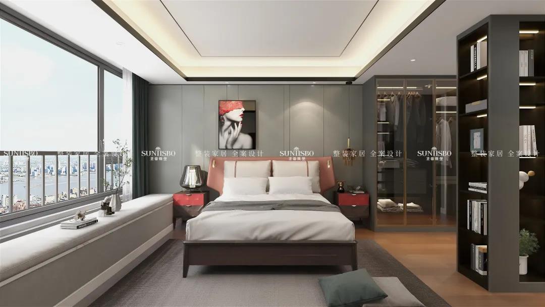 主臥的床是意式輕奢時尚與東方雅韻極致融合,沒有半點突兀和乖張。,意大利最出名的便是它的工藝與設(shè)計,時尚的莫蘭迪色系、輕奢金屬的運用,體現(xiàn)嫻熟的意式家具設(shè)計底蘊(yùn),兩者之間融合的相得益彰。