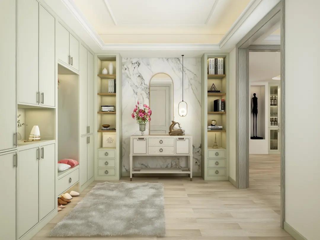 玄關色調是時尚的仿古白搭配淺灰,不過多矯飾,