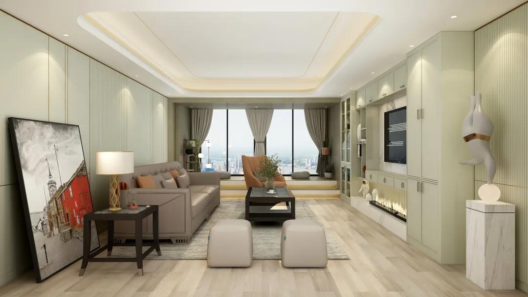 本案例的女主人對室內(nèi)軟裝很感興趣,對于家居設計也有自己一套獨特的見解,設計師與女業(yè)主交流之后,以美式輕奢作為空間的主導設計線索,凝聚獨具匠心的設計,在美觀與實用兼行的情況下,讓整個家看起來更具精致輕奢范兒。