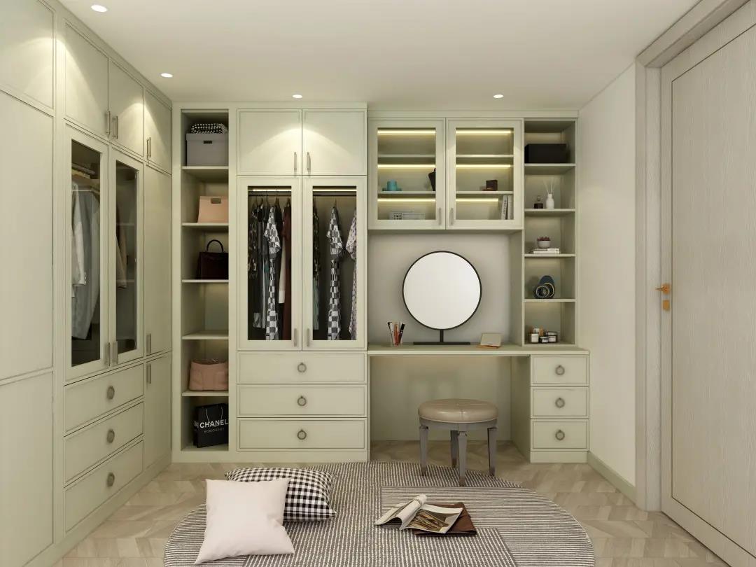 主臥衣帽間的衣柜結合妝臺一體設計,