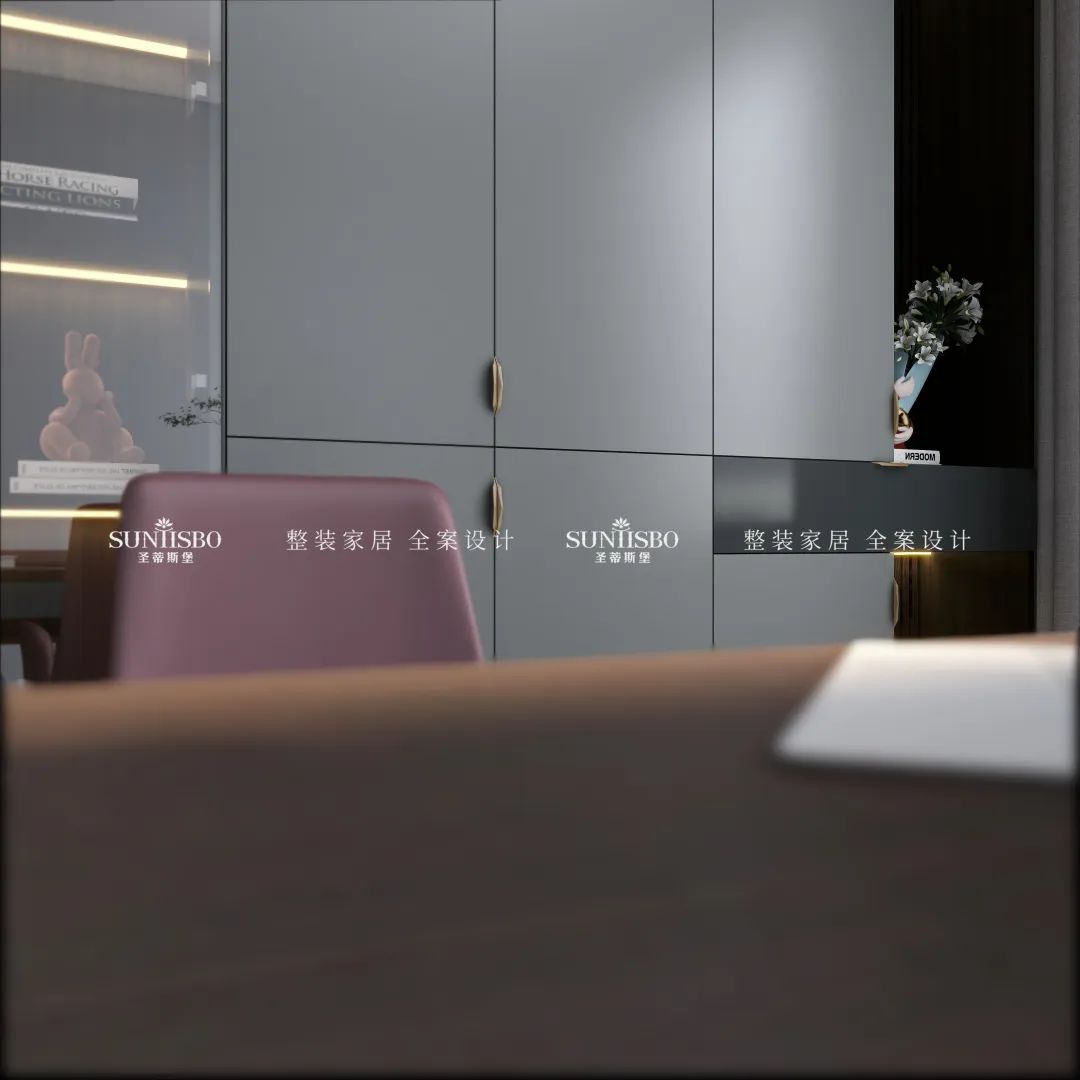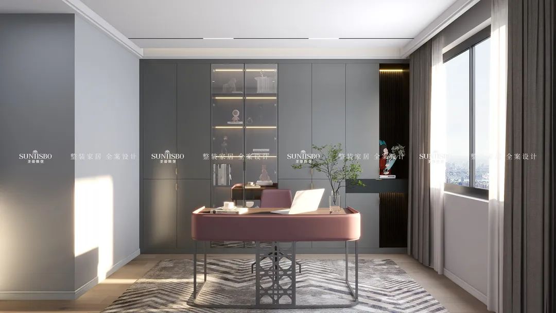 啞灰的定制書柜,冷靜理性,帶來思緒上井然有序的細(xì)密邏輯。天然原生的光感,讓視覺達(dá)到完美平衡。書房特意配上多裂綠植,讓現(xiàn)代簡約與傳統(tǒng)文化結(jié)合,萌發(fā)出別出心裁的設(shè)計,展現(xiàn)業(yè)主對傳統(tǒng)文化情結(jié)的喜愛。