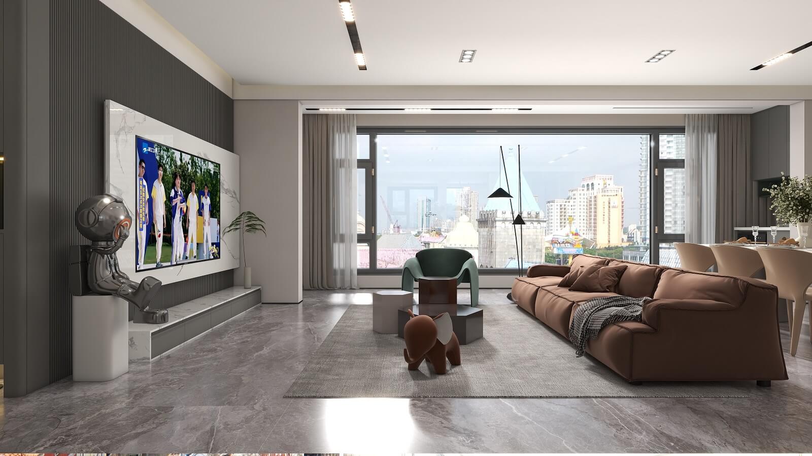 全面開放式格局,讓客餐廳之間相互聯(lián)動(dòng),毫無阻隔,在提升體驗(yàn)感的同時(shí),也增強(qiáng)了整體采光和通風(fēng)。